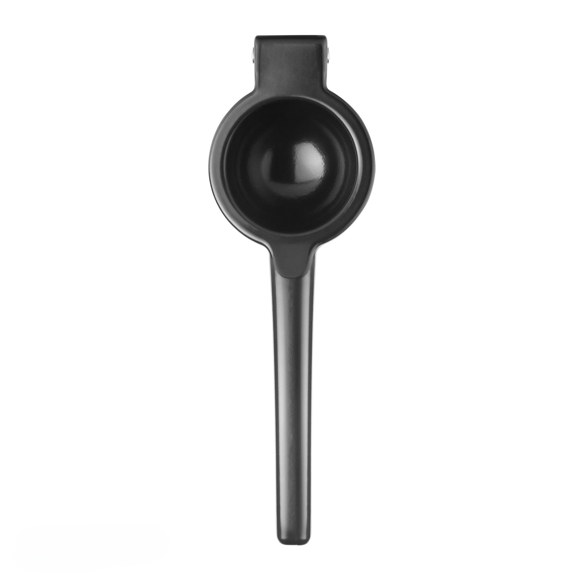 This durable black powder-coated aluminium citrus press is designed for efficiently extracting the fresh juice from lemons and limes—ideal for cocktails. Its compact, easy-to-use design ensures maximum juice yield with minimal effort and no seeds. Just cut the fruit in half, place it cut side down, and squeeze. A reliable tool for any home bar or professional setting.