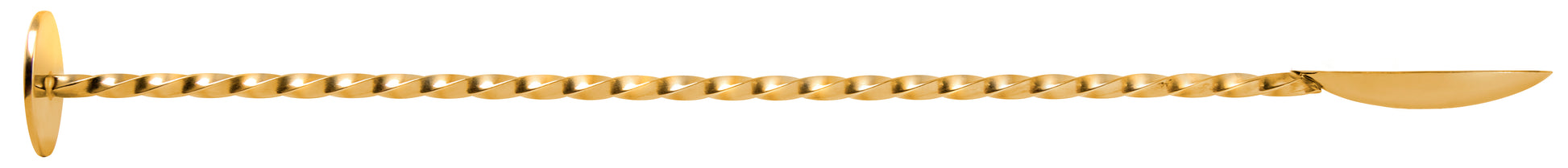 This bar spoon is crafted from premium 18/8 Japanese stainless steel with a durable polished gold finish. The twisted stem allows for smooth stirring and precise layering, while the flat disc end doubles as a gentle muddler for soft ingredients like sugar cubes and fruits. The spoon’s head also holds an approximate 5ml measure, useful for recipes that call for small quantities.