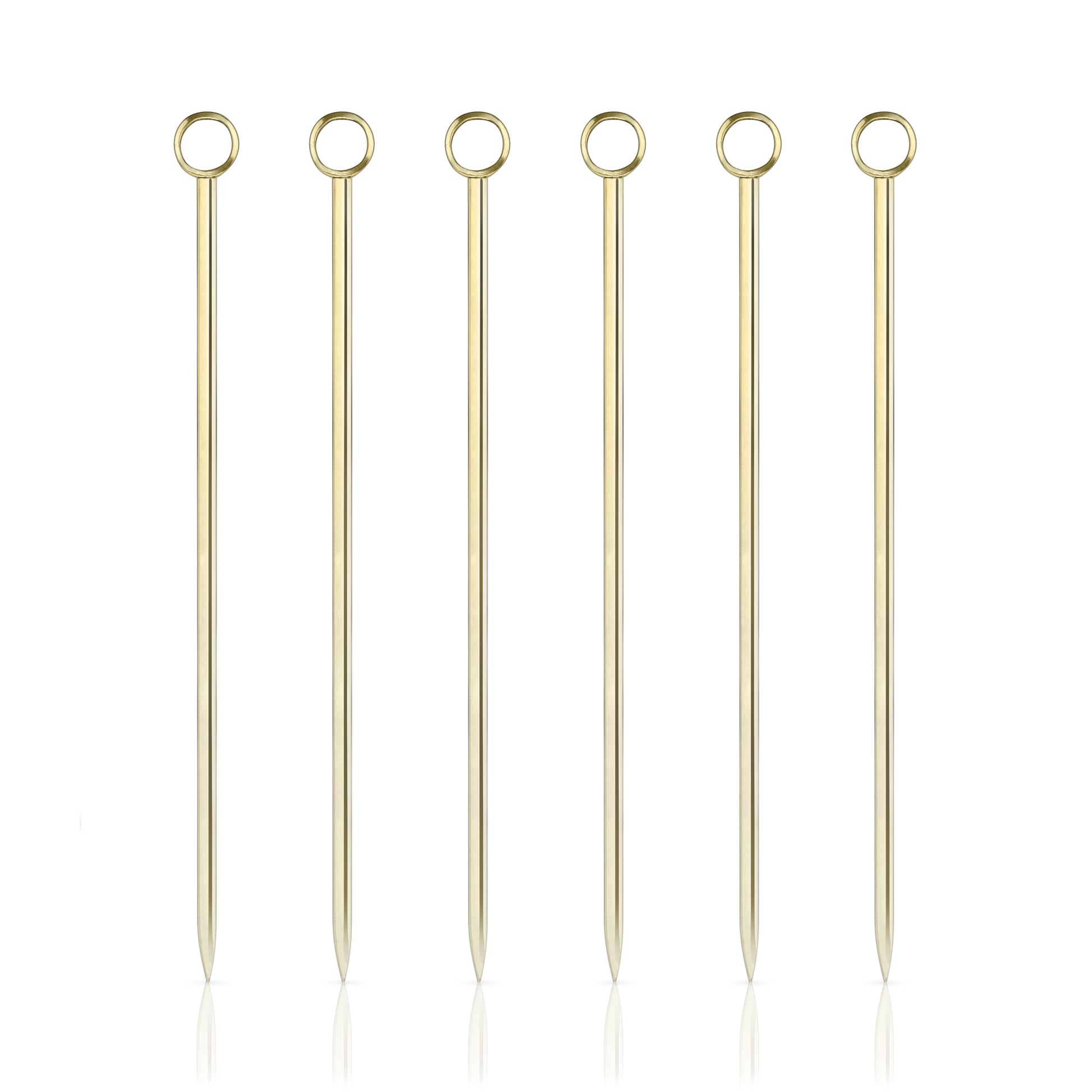 Viski’s classic set of six cocktail picks, available in stainless steel, copper plated and gold plated, features a small ring at the top—ideal for propping an olive in your Martini or a brandied cherry in your Manhattan.