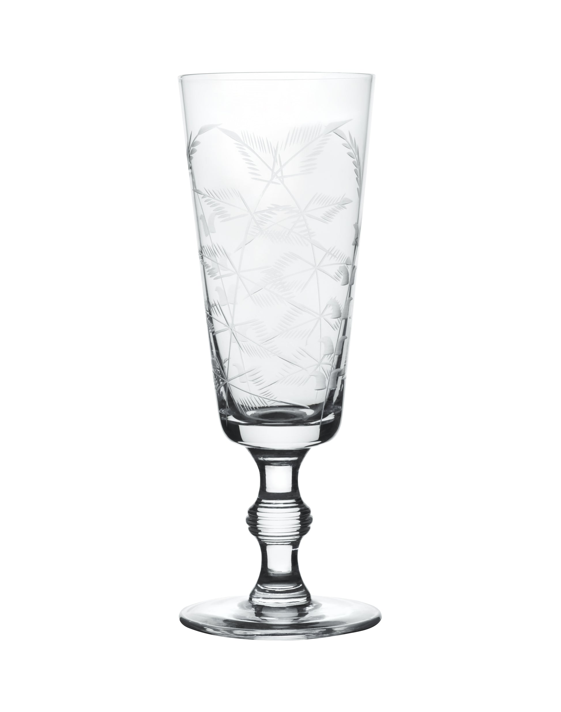 This set of four crystal Champagne flutes features a hand-etched fern design, with intricate details that evoke lush greenery. Ideal for serving Champagne, sparkling wine, or a refreshing mimosa, the delicate pattern adds a nature-inspired charm to each toast.