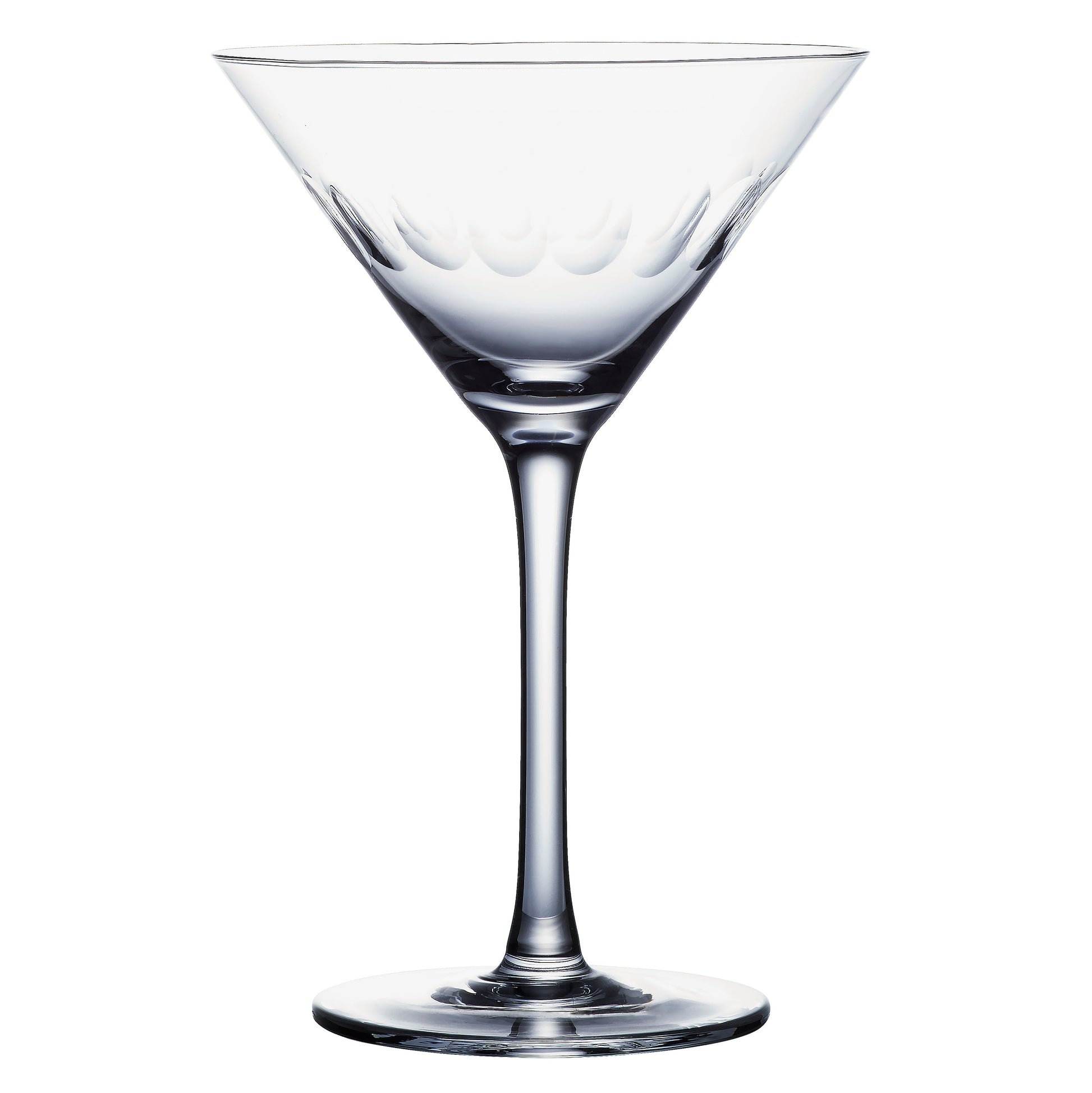 This pair of crystal Martini glasses features a striking hand-etched lens design, adding texture and depth to your cocktail experience. Ideal for Martinis or any classic stirred cocktail, their vintage-inspired design brings a refined touch to your home bar.