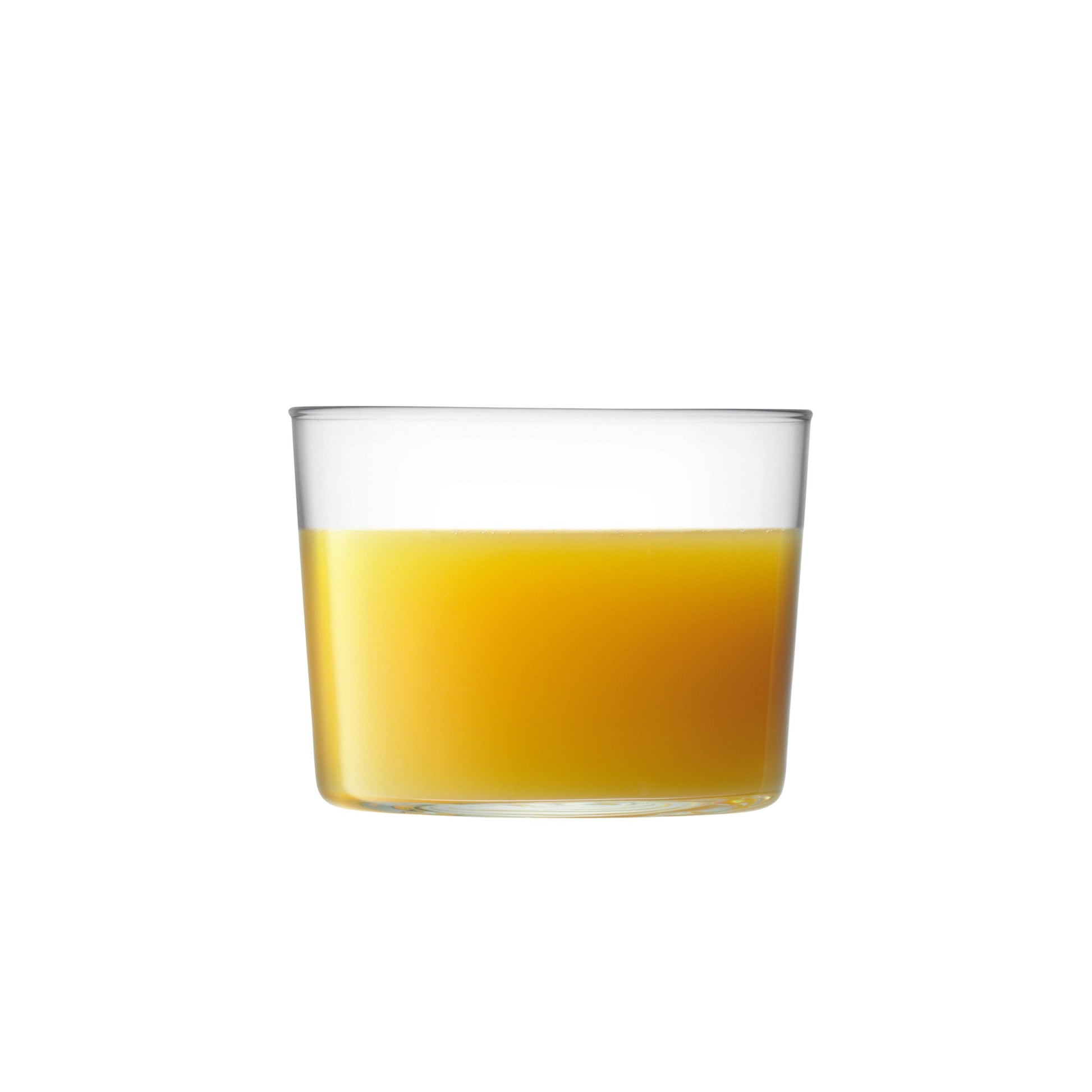 A set of four low, modern tumblers with fine walls and a space-saving stackable design. Perfect for a Negroni, use the spare glasses as a serving bowl for olives, nuts and snacks.