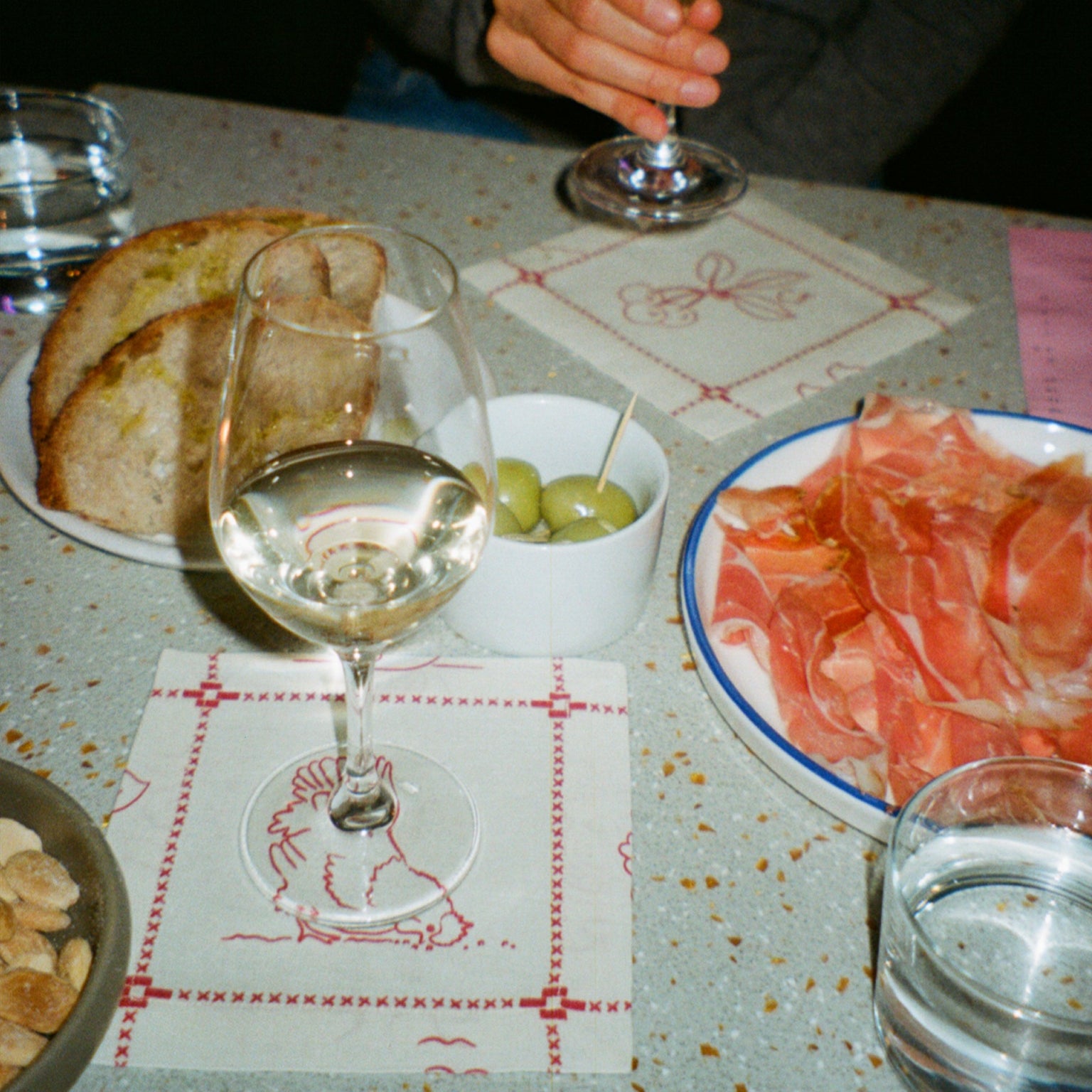 Each motif has been hand drawn and represents an aspect of the Cherry Flips founders’ familial heritage combined with wishes for the future - an invocation to everyone who sits around the table to enjoy not only good food and drink but also good fortune.