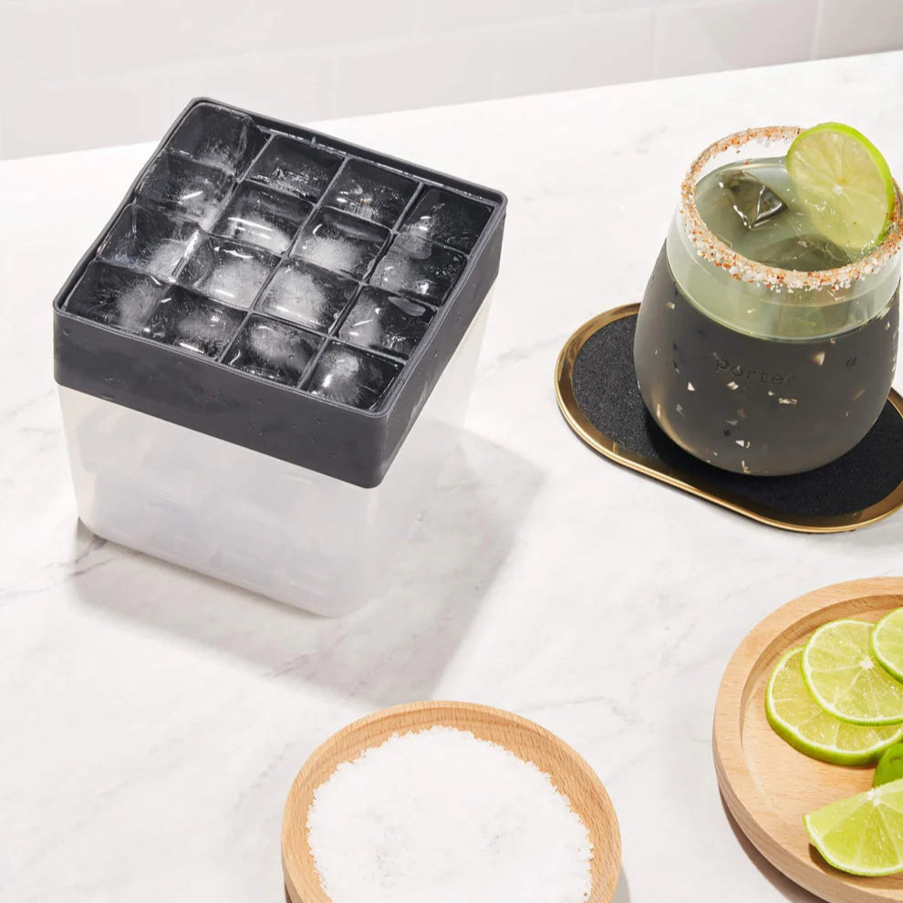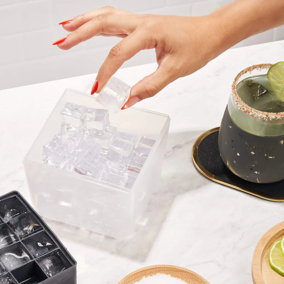 Make and store multiple servings of ice with this compact and efficient ice box, perfect for home cocktail making. It holds up to three trays of ice—48 cubes total—so you’ll always have lots of ice at the ready for shaking and serving your favourite cocktails. Enhance your beverages by freezing juice or infusing the ice with citrus, fruits, herbs, and even edible flowers.